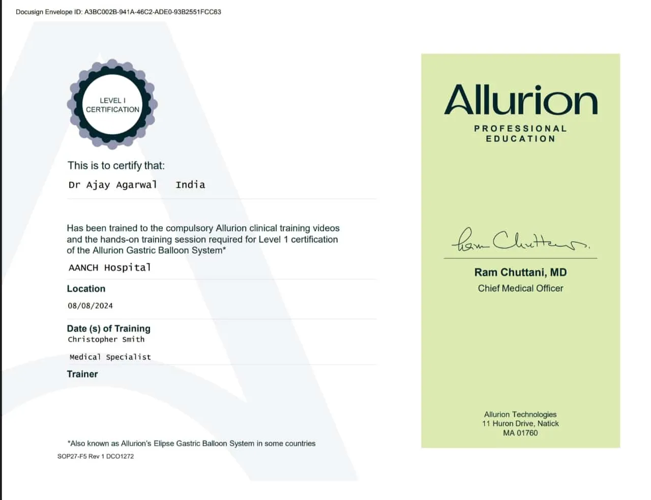 Dr Ajay Agarwal is one of the few Allurion Gastric Balloon Certified with Hands-On Experience in Jaipur